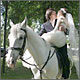 До речі, про принців. Яка дівчина не мріє про принца або лицаря на білому коні? Це вічна романтична мрія кожної. Ви уявляєте її стан, коли наречений під'їде до порогу на білому коні? Такої ефектної появи не чекатиме ніхто! Такому нареченому подруги "продадуть" наречену при викупі, не торгуючись. Позаду за нареченим може під'їхати "Мерседес" або "Лімузин", але перше враження завжди найсильніше! Ми можемо запропонувати Вам кілька уроків верхової їзди і білого коня напрокат! |